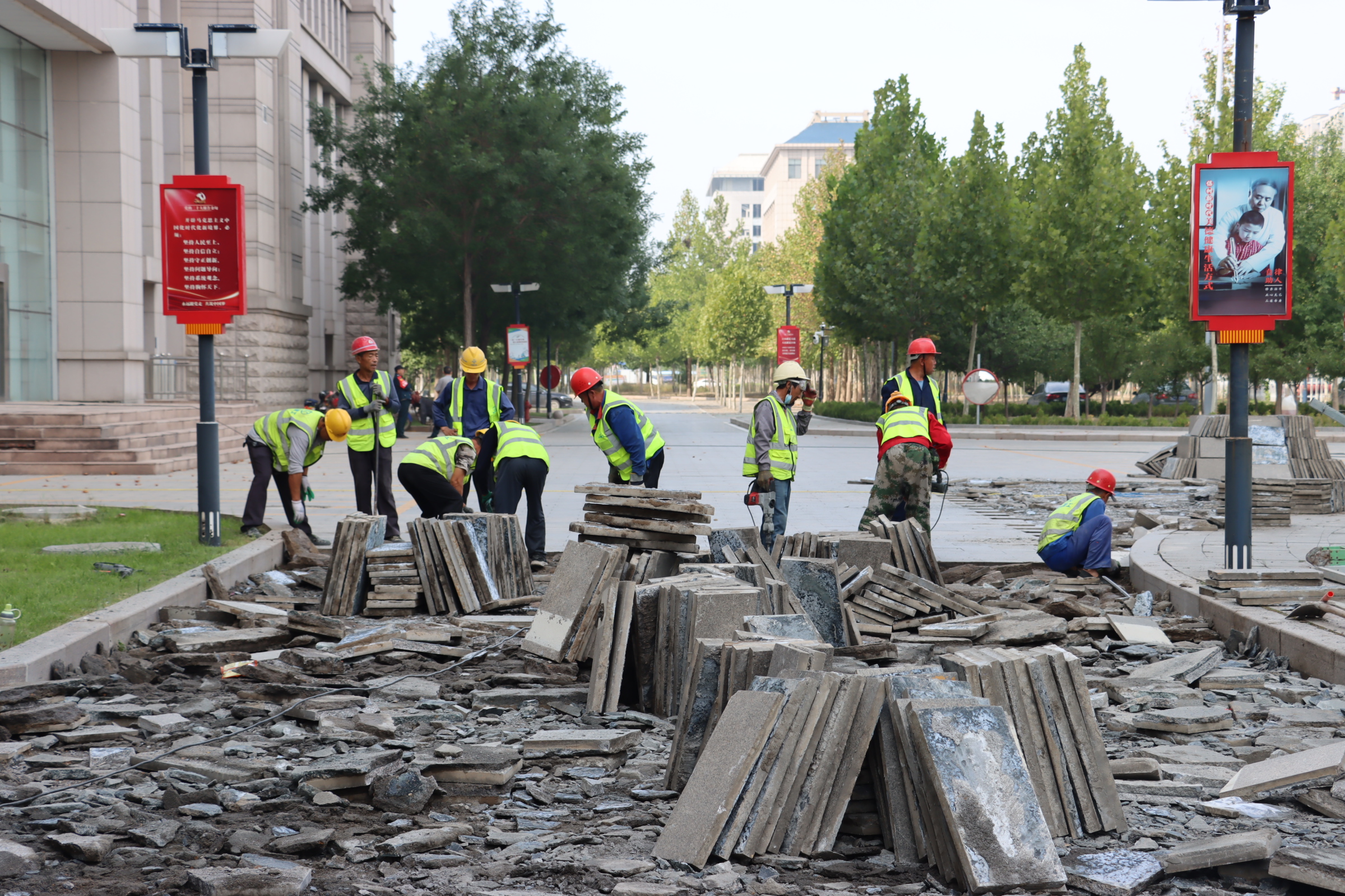 行政大廈廣場(chǎng)維修工程,參建人員堅(jiān)守在施工一線,圍繞“搶工期、重安全、抓進(jìn)度、保質(zhì)量”四個(gè)中心,齊心協(xié)力推進(jìn)工程進(jìn)度,他們以“工匠精神”打造精品工程,以昂揚(yáng)的姿態(tài)跑出高質(zhì)量發(fā)展“加速度”。