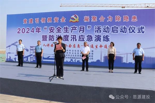 6月6日,由濱州市思源建設(shè)投資發(fā)展有限公司承辦的2024年“安全生產(chǎn)月”啟動(dòng)儀式暨防洪度汛應(yīng)急演練活動(dòng)在沾化區(qū)潮河擋潮閘建設(shè)項(xiàng)目現(xiàn)場(chǎng)舉行,沾化區(qū)濱海鎮(zhèn)人民政府、沾化區(qū)應(yīng)急管理局、沾化區(qū)城鄉(xiāng)水務(wù)局等單位參加,區(qū)人民政府副區(qū)長(zhǎng)沈洪梅參加啟動(dòng)儀式并講話(huà)。