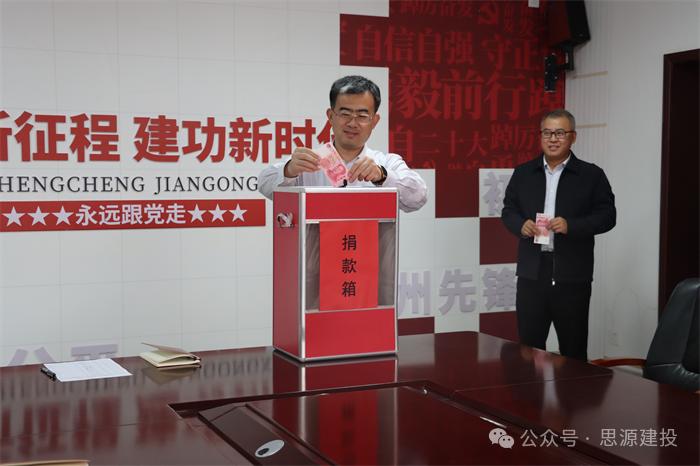 為大力弘揚(yáng)慈善文化,奉獻(xiàn)愛(ài)心,營(yíng)造“人人參與慈善”濃厚氛圍。10月25日,濱州市思源建設(shè)投資發(fā)展有限公司開(kāi)展“在知愛(ài)建 奉獻(xiàn)愛(ài)心”主題黨日捐款暨“慈心一日捐”活動(dòng),以實(shí)際行動(dòng)助力慈善募捐。