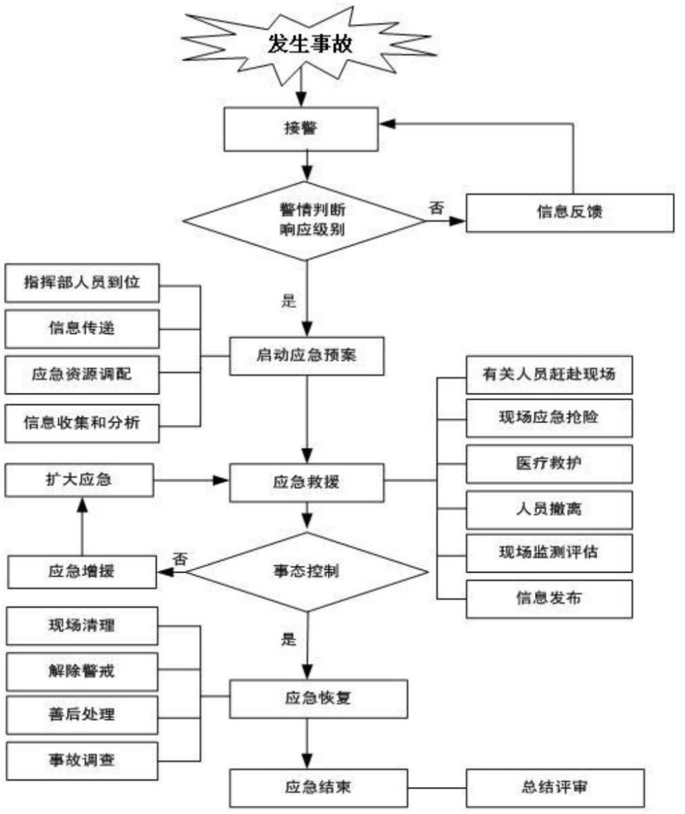 接事故報(bào)告、統(tǒng)一應(yīng)急指揮、現(xiàn)場應(yīng)急救助、對事故進(jìn)行初始評估、通知應(yīng)急救援單位、迅速組織人員、設(shè)備、物資到現(xiàn)場。